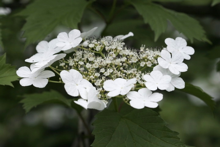 レンプクソウ科ガマズミ属の落葉低木 カンボクの花:6月 カンボクの花:6月 カンボクの葉:葉が三つに裂ける。参考:オオカメノキ(ムシカリ) は花が似ているが丸い葉・カンボク は5枚の花びらのうち1枚が小さい。 カンボクの実:9月 カンボクの種:9月に播種 カンボクの発芽:翌年の3月 カンボクの発芽:発芽から2ヶ月の5月 2年目のカンボク:5月