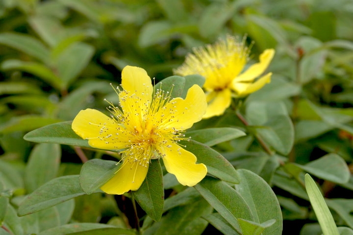 オトギリソウ科オトギリソウ属の多年草 トモエソウの花:6月 トモエソウの葉 トモエソウの実:10 月 トモエソウの種:10 月に播種 トモエソウの発芽:翌年の4月 トモエソウの発芽:発芽から1ヶ月の5月 トモエソウの芽生え:2年目の4月 トモエソウの蕾:2年目の7月 トモエソウの開花:2年目の7月